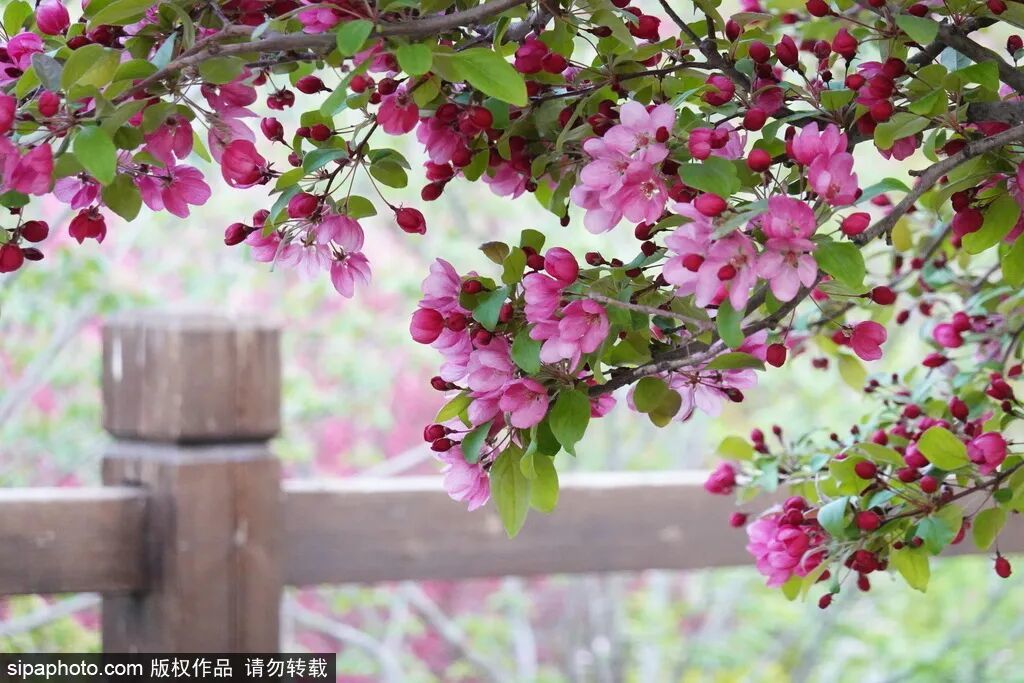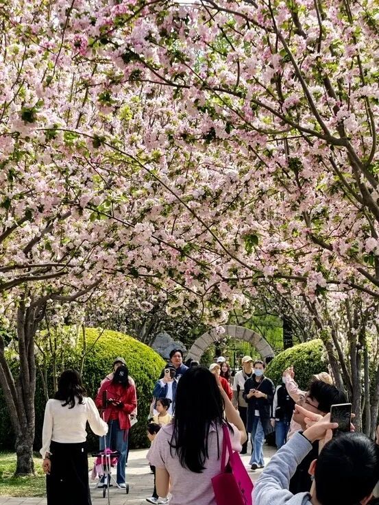 全园近 1.5 万平素米地栽海棠渐渐参加盛花期