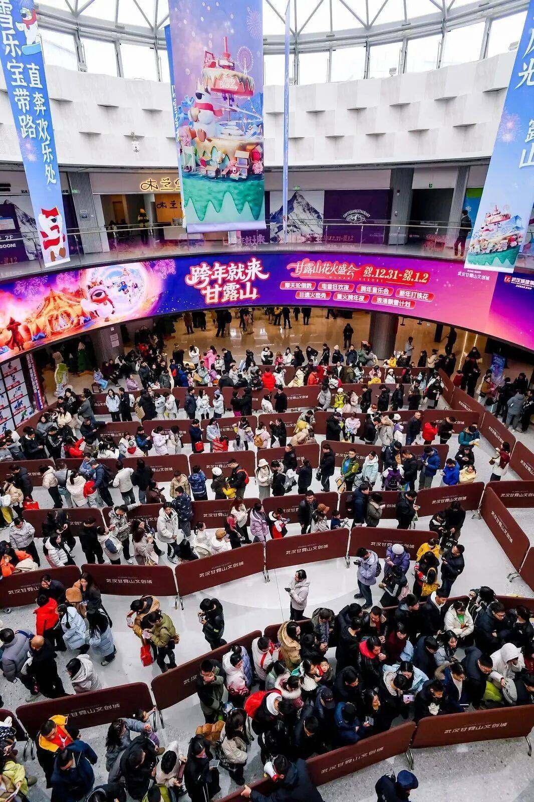 武汉甘霖山海外滑雪场进口排起长队。