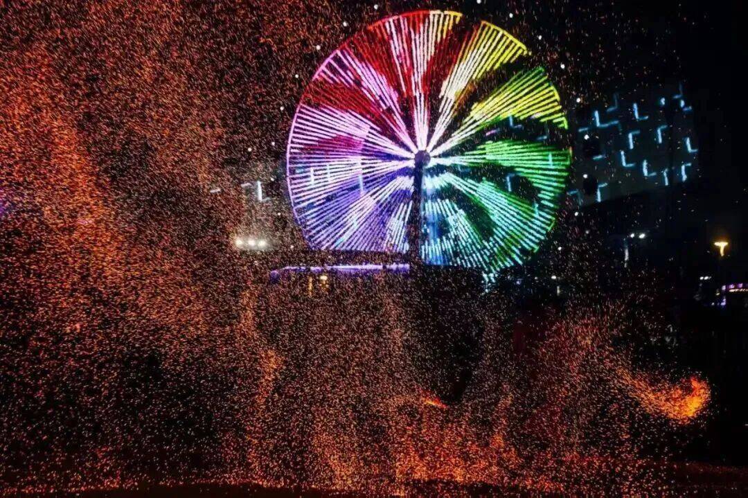 当晚,“非遗打铁花”“闲适飘雪磋议”“篝火晚会”等步骤接连上演,铁水泼洒成星雨,东说念主工降雪营造童话寰球,现场成为光影与欣忭的海洋。