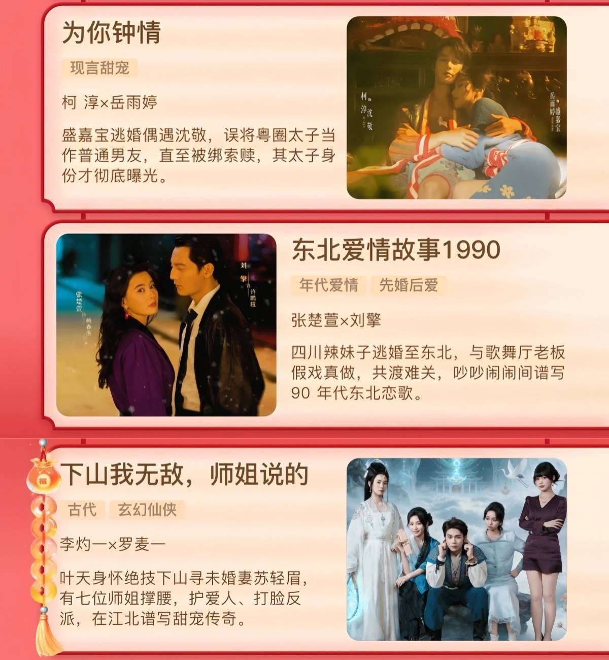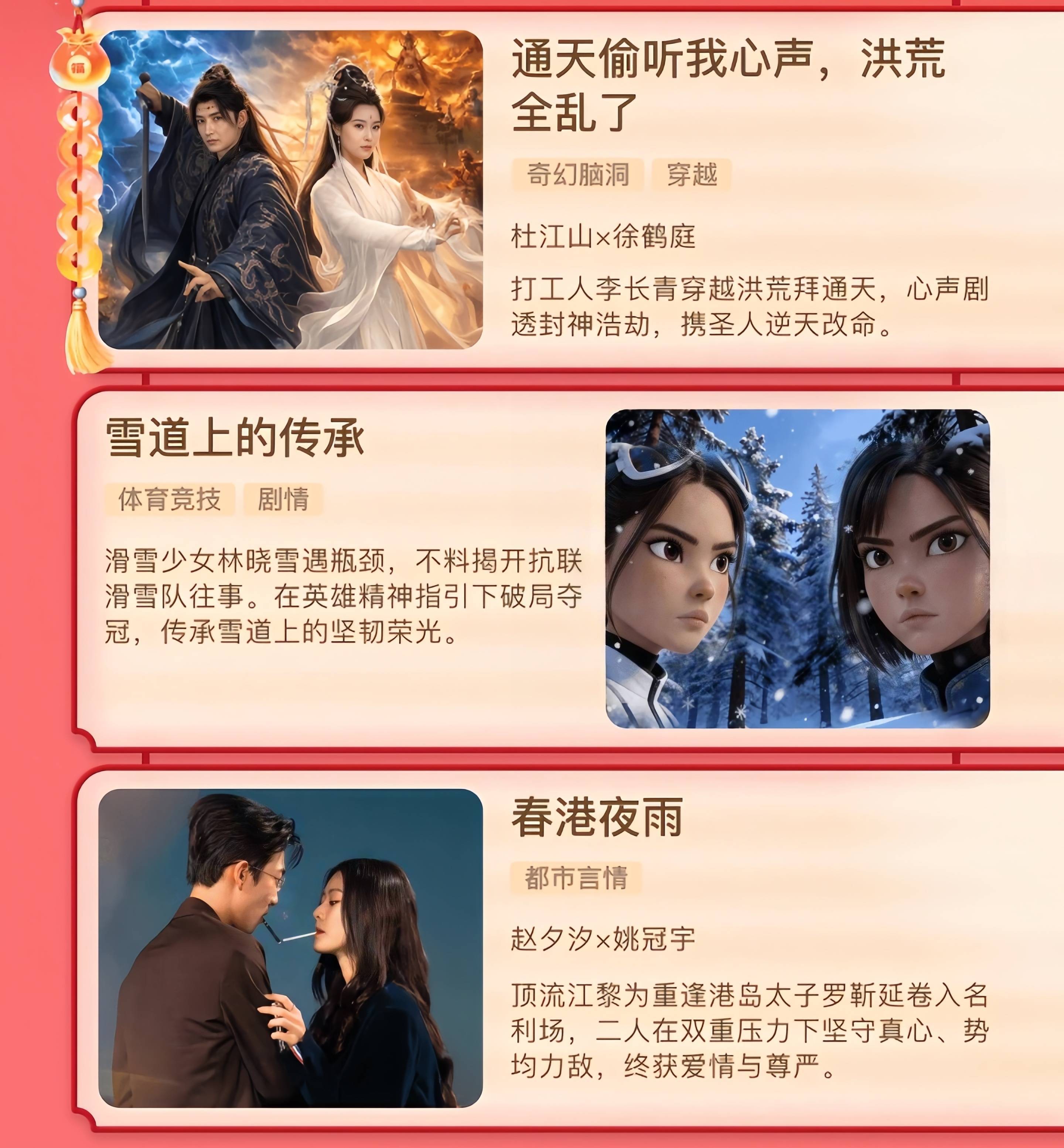 红果短剧发布了春节时分(腊月二十九到正月初六)的追剧日期开yun体育网,整整38部定档新剧,齐市甜宠、年代颐养、高能剧情全袒护,一站式爽快通盘追剧口味,这个假期追剧毋庸愁了!