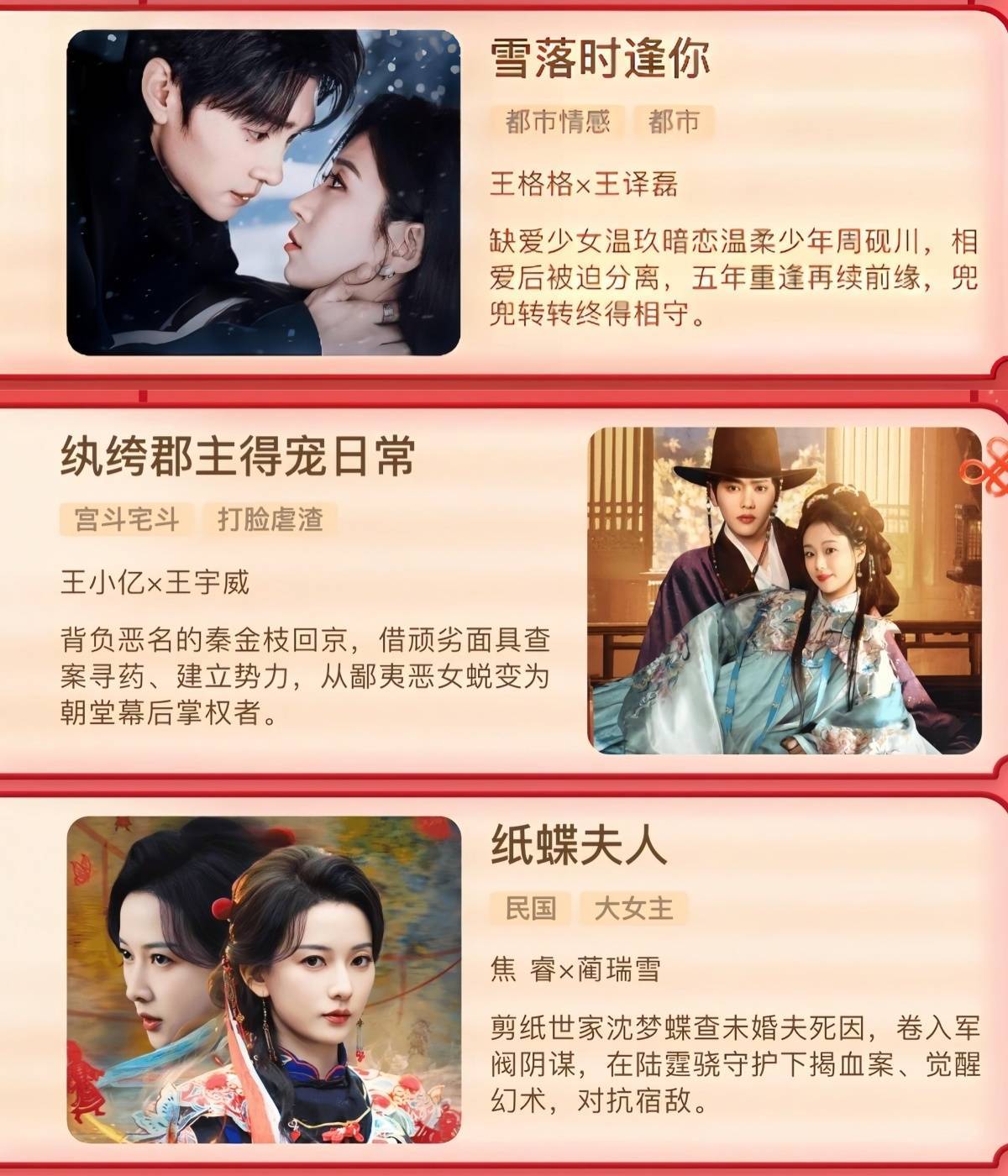《雪落时逢你》王格格&王译磊,崭新搭档,看剧照很有氛围感。格格确凿是太劳模了,新剧络续!