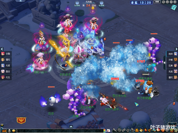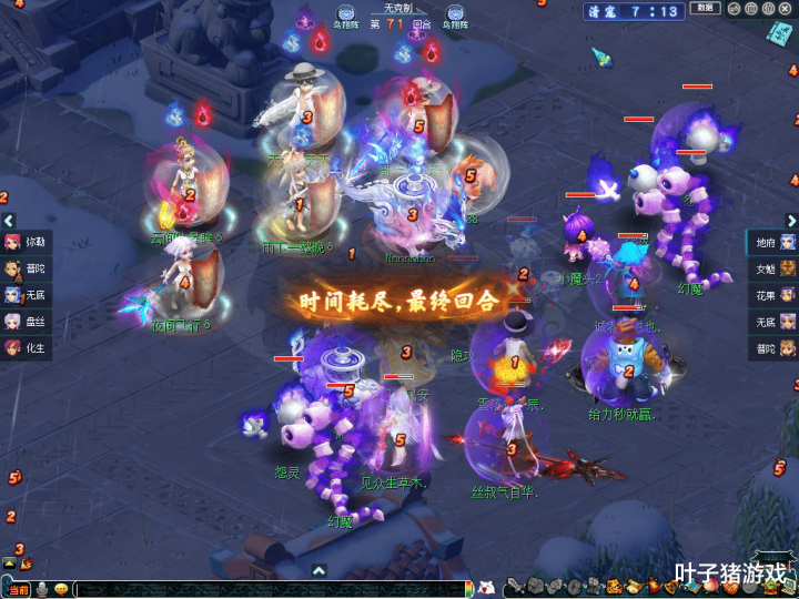 战局一直拖入决胜回合。此时,紫禁城花果山虽血条见底且身中紧箍咒,处于弱点,但好在有龟速宠实时拉起。