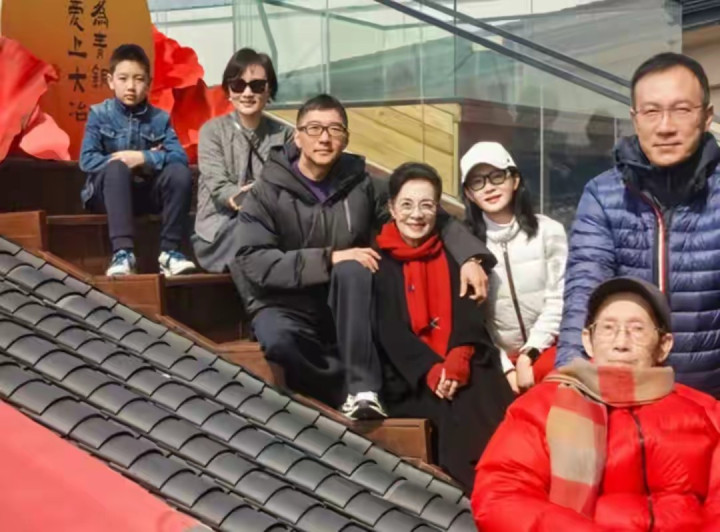 最前边穿蓝色羽绒服推着轮椅的男士,是陈数哥哥陈丹,报谈里提到他是作曲家,站得挺拔,眼力又软,轮椅上戴帽子的老东谈主是陈数父亲,红色羽绒服,笑得很开,看起来安平稳稳,这一幕其实挺有冲击力。