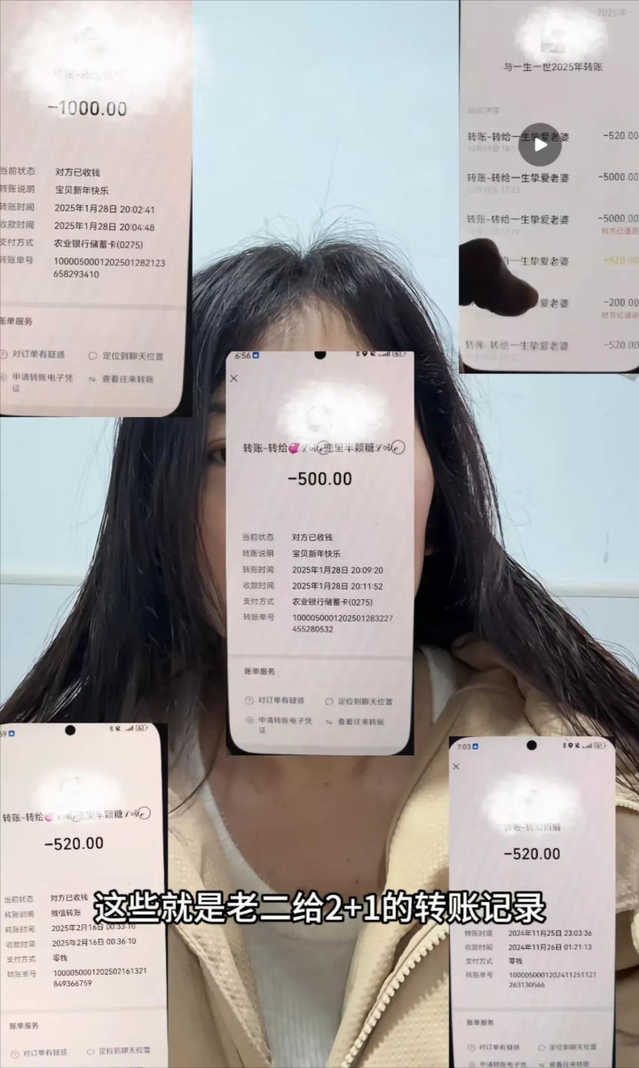 她同步晒出多张转账纪录截图,最早可追思至2024年,其中不乏“520”“一世挚爱”等迁延备注,与厉怀远对家庭的淡薄造成夺目对比。