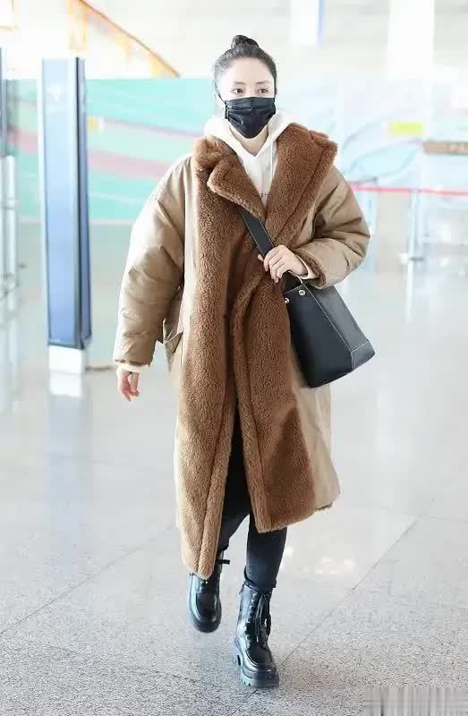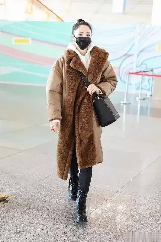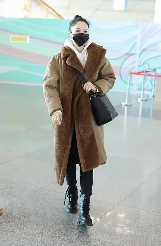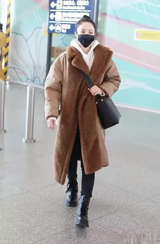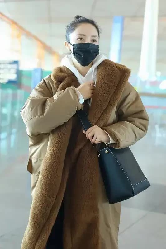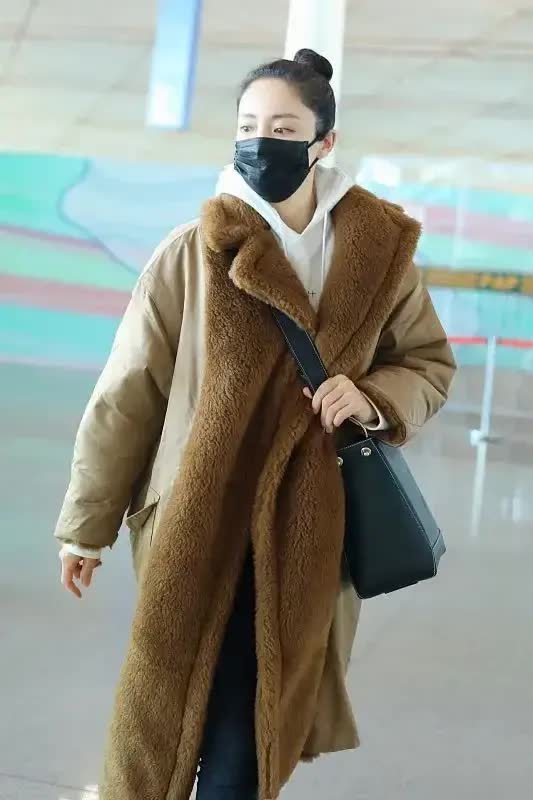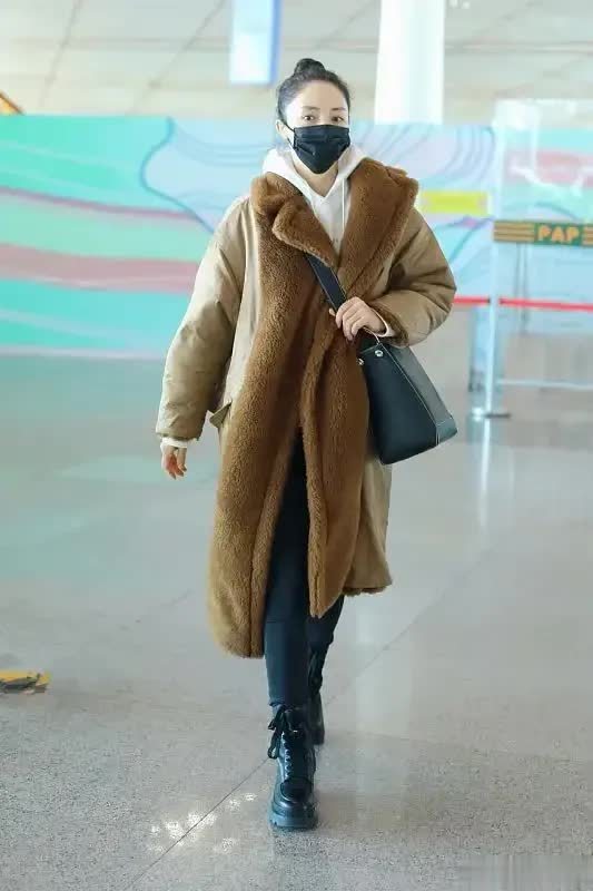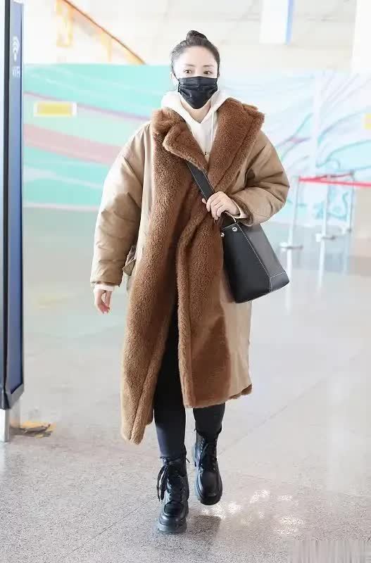 董璇的最近的一组机场私服中,就穿了一件驼色的皮草拼接大衣,扎了丸子头,搭配白色的连帽卫衣,总计前锋又精良秒变优雅女神,完全看不出真的年岁!