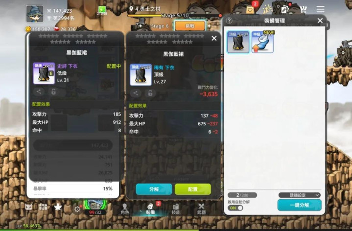 不同于前两者的整合,《枫之谷》在装备体系上动刀最显著,拆分极细。