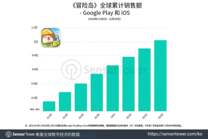把柄SensorTower的数据(后文数据开首交流),《枫之谷:舍弃冒险记》(后文简称《枫之谷》)的发达格外迅猛,上线仅45天,累计下载量冲破300万,累计收入进步1亿好意思元,约7亿东谈主民币。