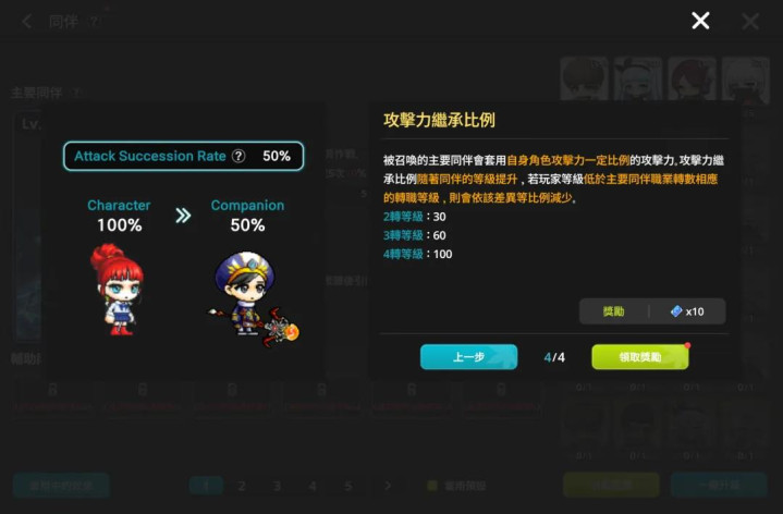 游戏保留了《冒险岛》端游的小部分转职阶梯(也可能是现在没开放更多作事,初期就这样多),但也把作事相应的手段打散重组,并按照等第缓缓开下学习、升级和耀眼三个功能。
