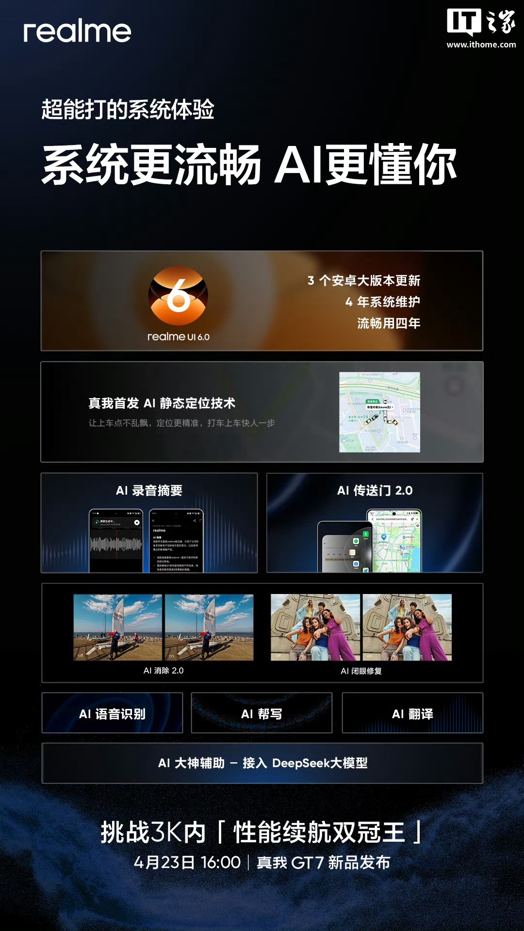 当作参考,在本年 4 月 23 日发布的真我 GT7 手机预装了 realme UI 6.0 系统,赞成 4 年系统爱护、领有 3 个安卓大版块更新,堪称“流通用四年”。
