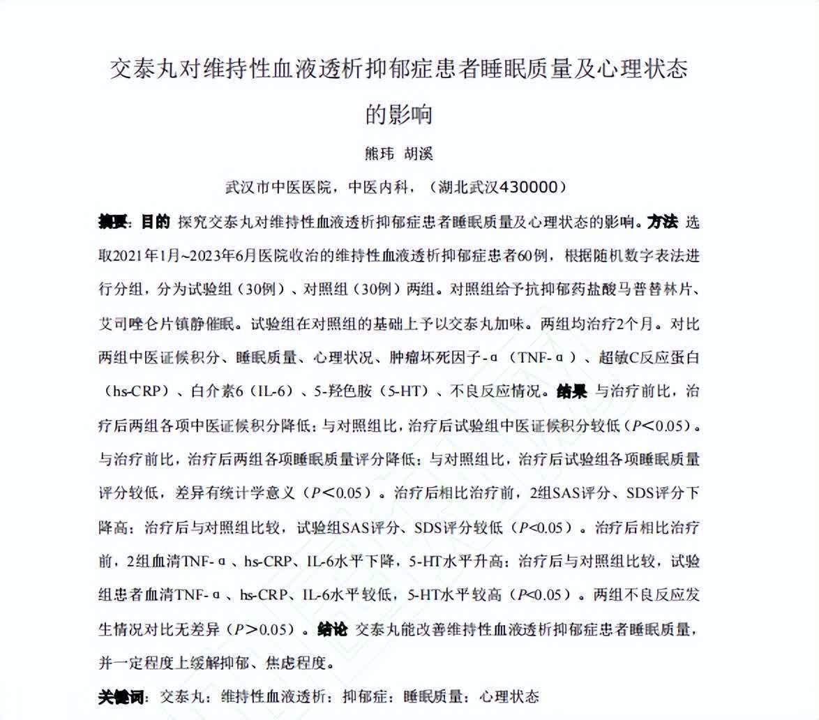 参考贵府[1]熊玮 开yun体育网,交泰丸对保管性血液透析抑郁症患者就寝质地及情愫状态的影响,武汉市中医病院,2024-07-11