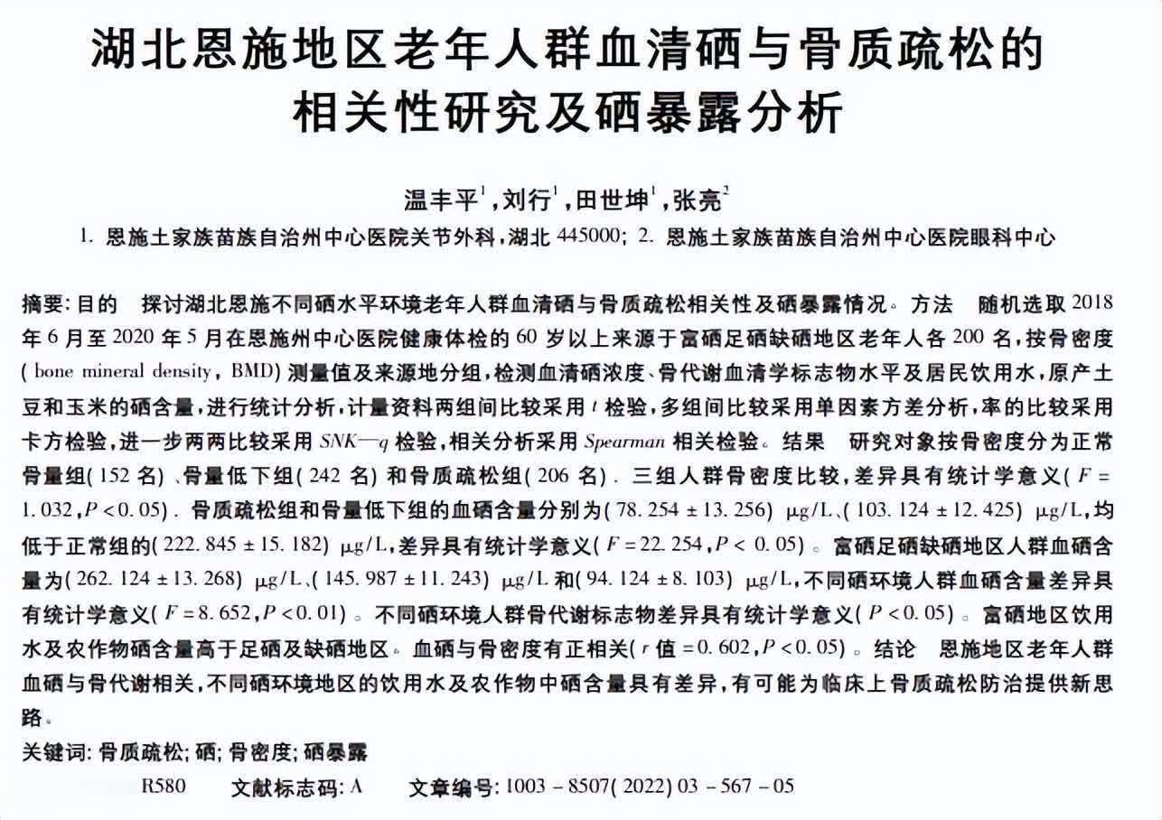 参考贵寓:温丰平.湖北恩施地区老年东谈主群血清硒与骨质疏松的关系性连接及硒显现分析开云体育,当代着重医学,2022-02-10