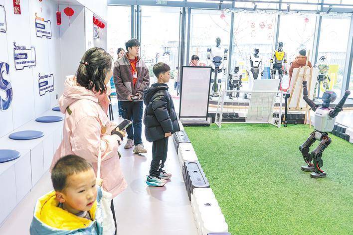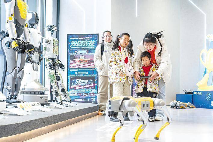 2月18日,位于武汉光谷的宇宙首家东谈主形机器东谈主7S店刚运行营业,前来体验的市民旅客就迟缓继续。店内推出的机器狗互动、机器东谈主踢足球、体感操控机器东谈主体验行径,眩惑了不幼年一又友尝鲜体验。(湖北日报全媒记者 魏铼 摄)